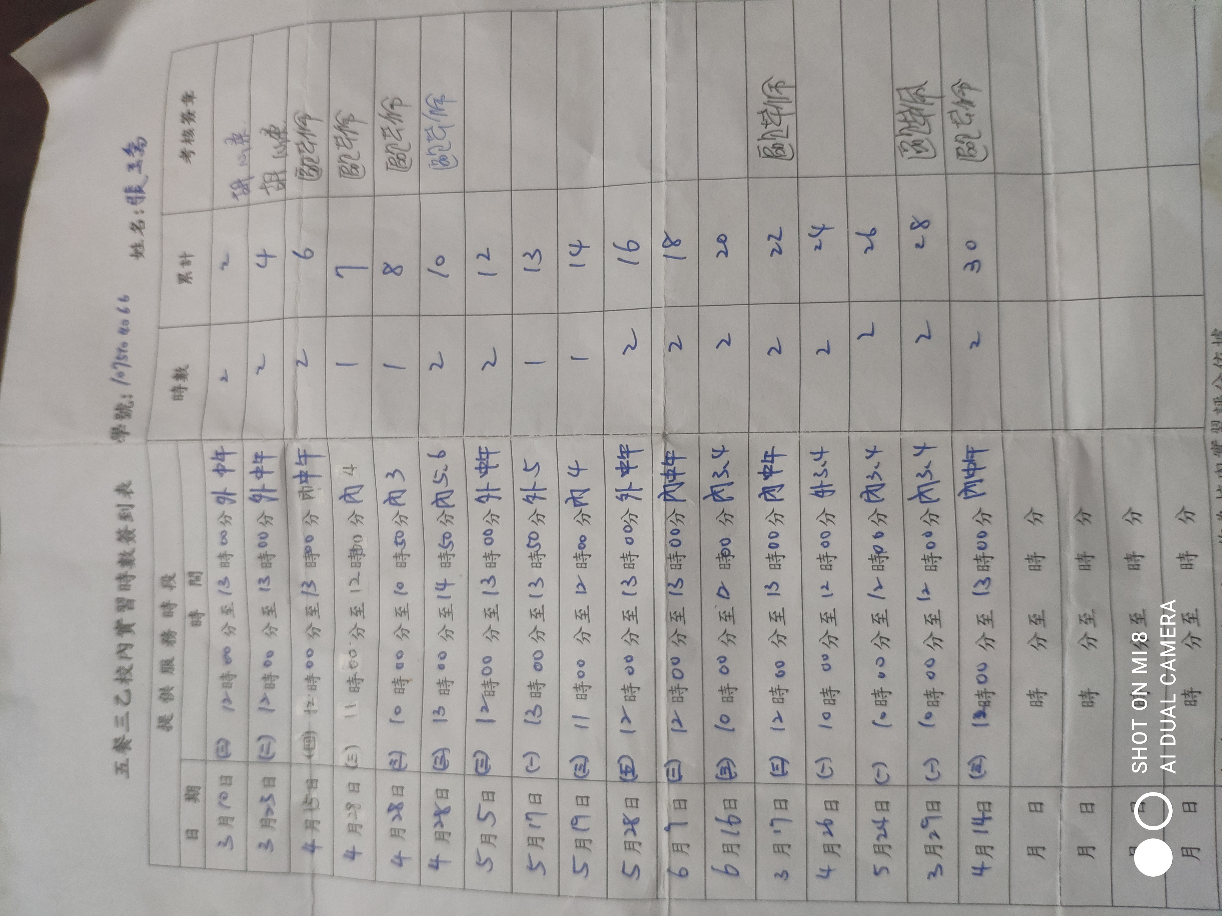 校內服務學習記錄
